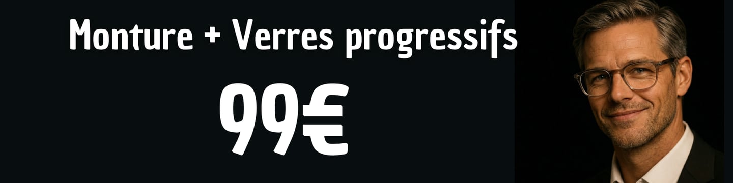 Prix de vente TTC conseillé en magasin pour une monture OWLET (sélection de montures présentées en magasin, d’un prix maximun de 30€) + 2 verres progressifs organiques 1.5 blancs non durcis, corrections -5/+5, cylindre +2 (sphère + cylindre ≤ +5), addition de 0.75 à 3.5. Options possibles avec supplément de prix. Offre non cumulable avec tout autre forfait, offre 2ème paire, promotion ou avantage en cours. Offre valable jusqu’au 31/12/2026. Visuel non contractuel.