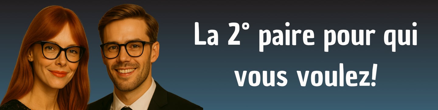 Offre valable pour l’achat d’un équipement optique complet (monture + verres unifocaux ou progressifs). La 2ᵉ paire est offerte pour 1 €uro de plus, avec verres correcteurs durci (-5/+5, cylindre +2, sphère + cylindre ≤ +5), à destination du porteur ou d’un bénéficiaire de son choix (conjoint, enfant, proche) disposant d'une ordonnance en cours de validité. Montures à choisir dans une sélection de marque Owlet. Options possibles avec supplément selon corrections ou traitements spécifiques. Offre valable jusqu'au 31 décembe 2025. Non cumulable avec d’autres promotions. Les lunettes correctrices sont des dispositifs médicaux, des produits de santé réglementés portant, au titre de cette réglementation, le marquage CE. Demandez conseil à votre opticien. Août 2025. Léon Vision – Salaise-sur-Sanne.