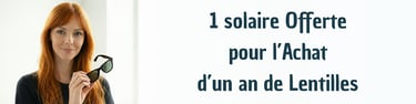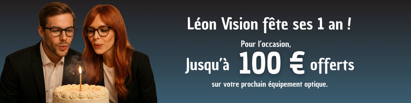 Pour tout achat simultané de 12 boîtes de lentilles correctrices journalières (boîtes d’au moins 30 lentilles), ou de 8 boites de lentilles bi-mensuelles (boîtes d’au moins 6 lentilles), ou de 4 boîtes de lentilles mensuelles (boîtes d’au moins 6 lentilles), d’une même référence, bénéficiez d’une paire de lunettes de soleil non correctrices, à choisir parmi les collections d’un montant maximum de 30€. L’offre peut être valable pour toutes lentilles souples, unifocales ou multifocales, parmi les lentilles distribuées en magasins. La monture solaire choisie devra être retirée simultanément à l’achat de la première boîte de lentilles. Offre non cumulable avec toutes autres offres promotionnelles, uniquement valable jusqu’au 31 décembre 2026 dans le magasin Léon Vision et Audition. Aucune réduction, échange ou remboursement ne peut se substituer à cette offre. Les lentilles correctrices sont des dispositifs médicaux qui sont des produits de santé réglementés portant, au titre de cette réglementation, le marquage CE. Demandez conseil à votre opticien.